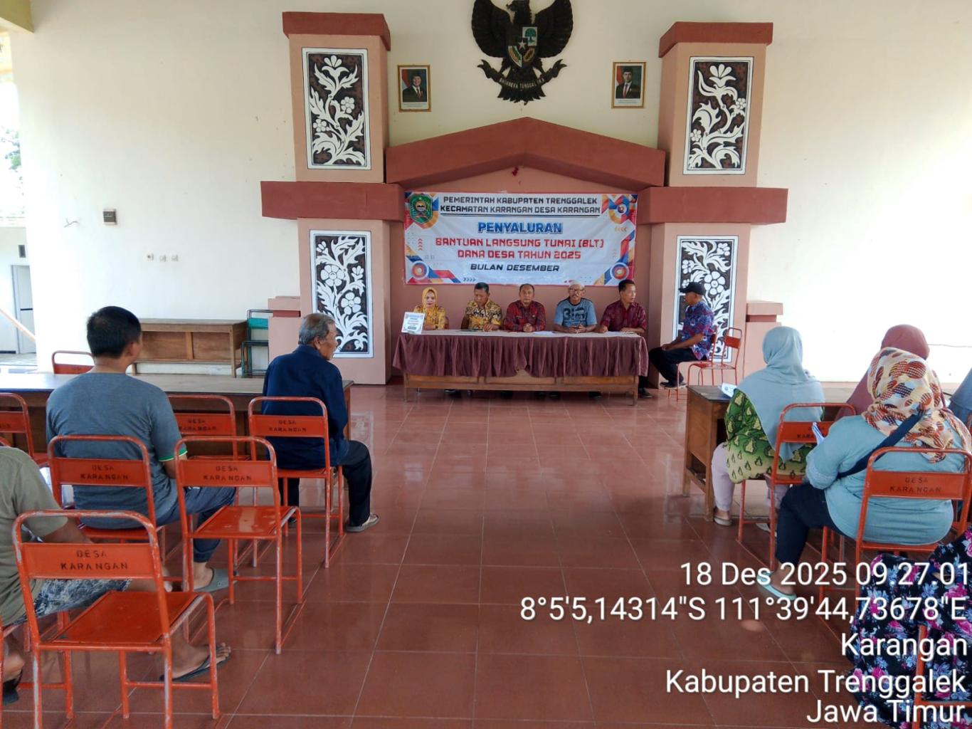 Pada Kamis tanggal 18 Desember 2025 Pemerintah Desa Karangan menyalurkan BLT DD untuk Bulan April 2025 kepada 42 KPM yang terpilih. Untuk KPM yang Sakit/Tidak bisa hadir bisa diambilkan/diwakilkan anggota keluarganya. Penyaluran Pertama BLT-DD dilakukan dan disaksikan oleh Pemerintah Desa, BPD, Bapak Camat Karangan, dan Pendamping Desa di balai desa karangan. Acara berjalan lancar, semoga BLT DD dapat membantu dan bermanfaat bagi para penerima.